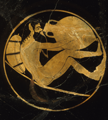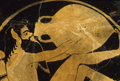 | Summary: | Tondo: Satyr reclining on back and drinking from pointed amphora |