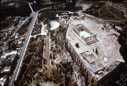Aerial view of Acropolis, from SE, Athens, Chalkotheke, Erechtheion, Temple of Athena Nike, Theater of Dionysos