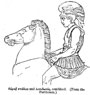 An armed horseman, on the frieze of the west side of the Parthenon, wears an